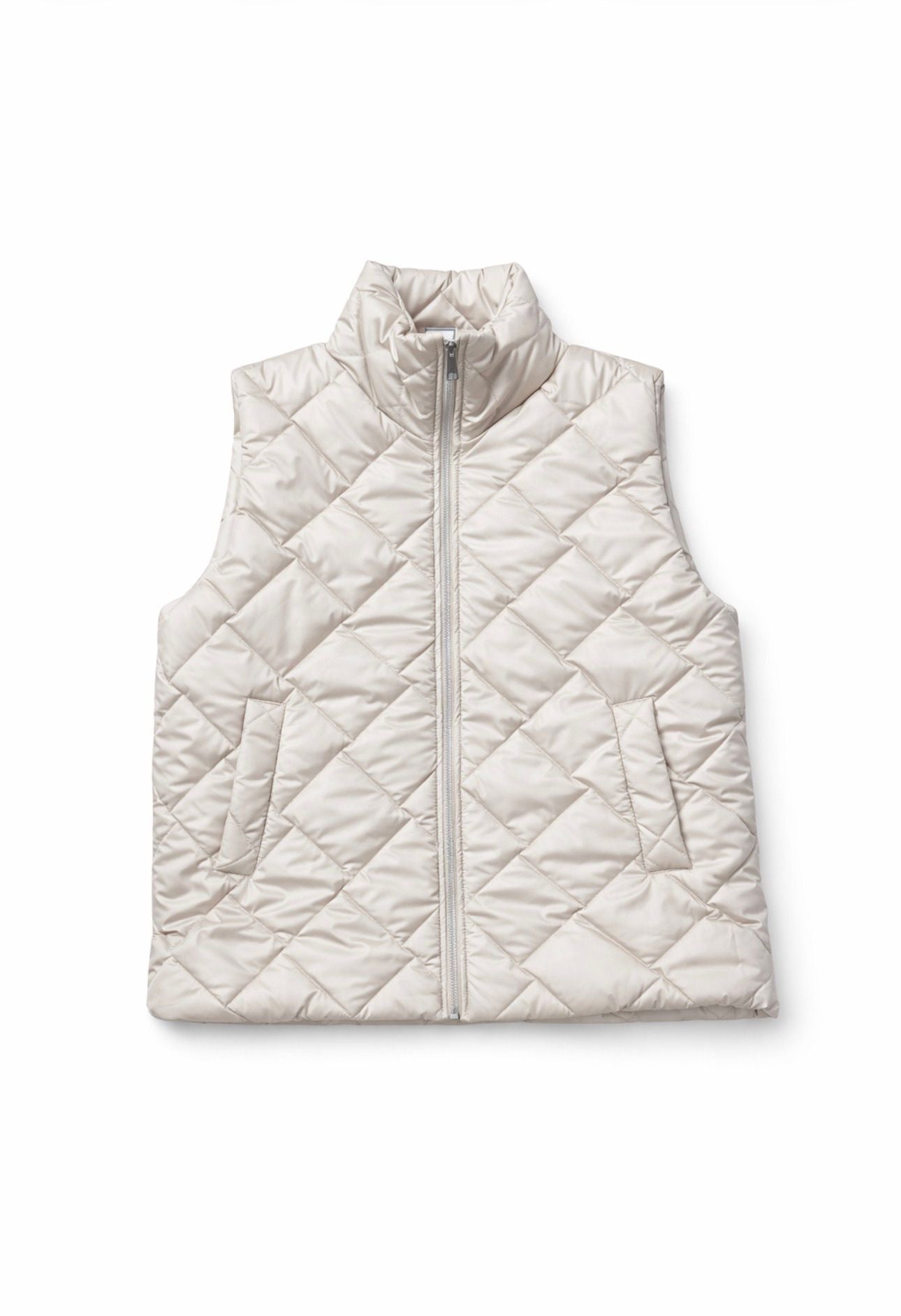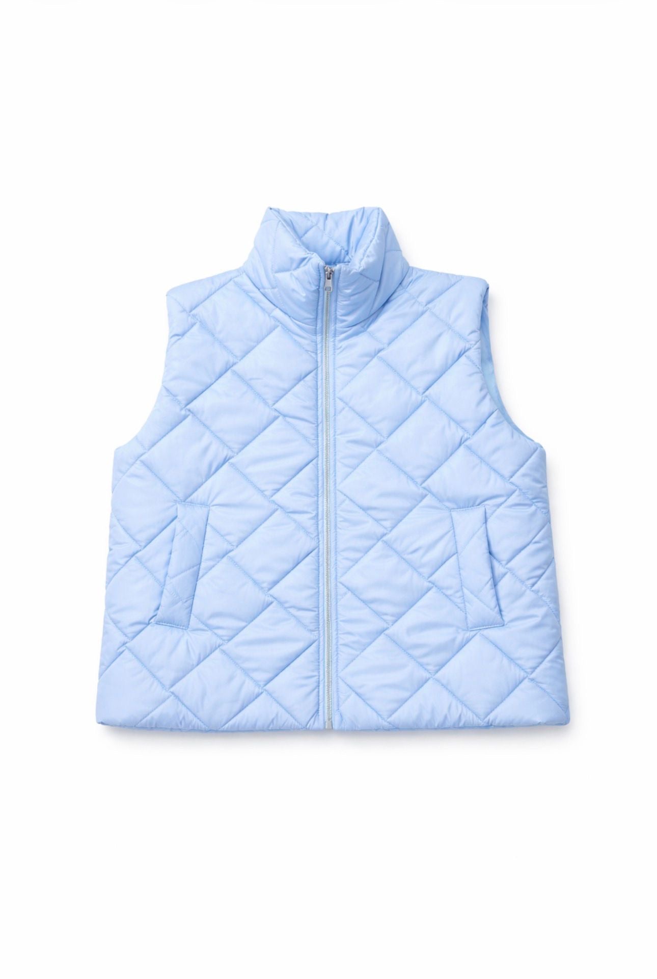 Chaleco acolchado ligero de diseño minimalista y elegante, perfecto para completar tus looks de entretiempo con un estilo sofisticado y actual. Su acolchado en patrón geométrico aporta estructura y modernidad, mientras que el cuello alto proporciona un extra de confort y protección frente al frío.